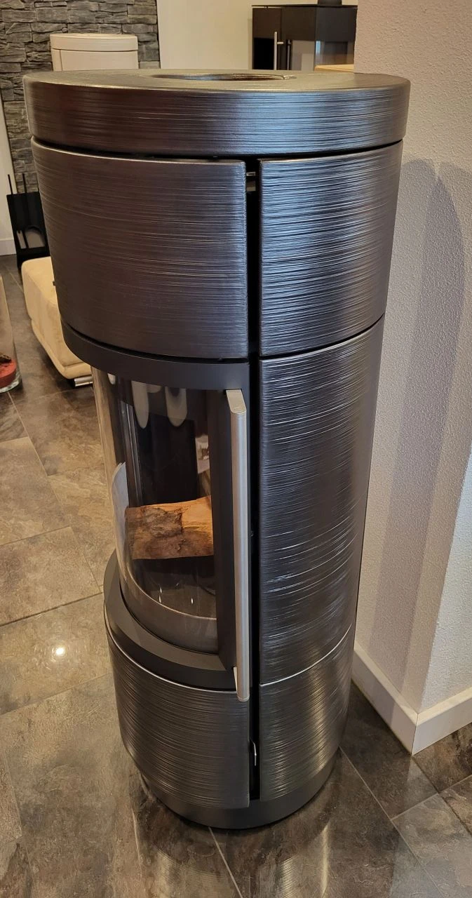 Hase Lima Ausstellungsstück 1 | Kaminofen mit Keramik Linientextur in meteorit | schwarz lackiert | 6 kW