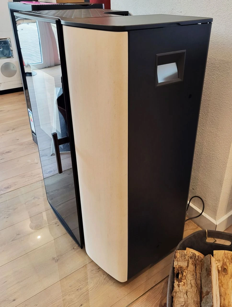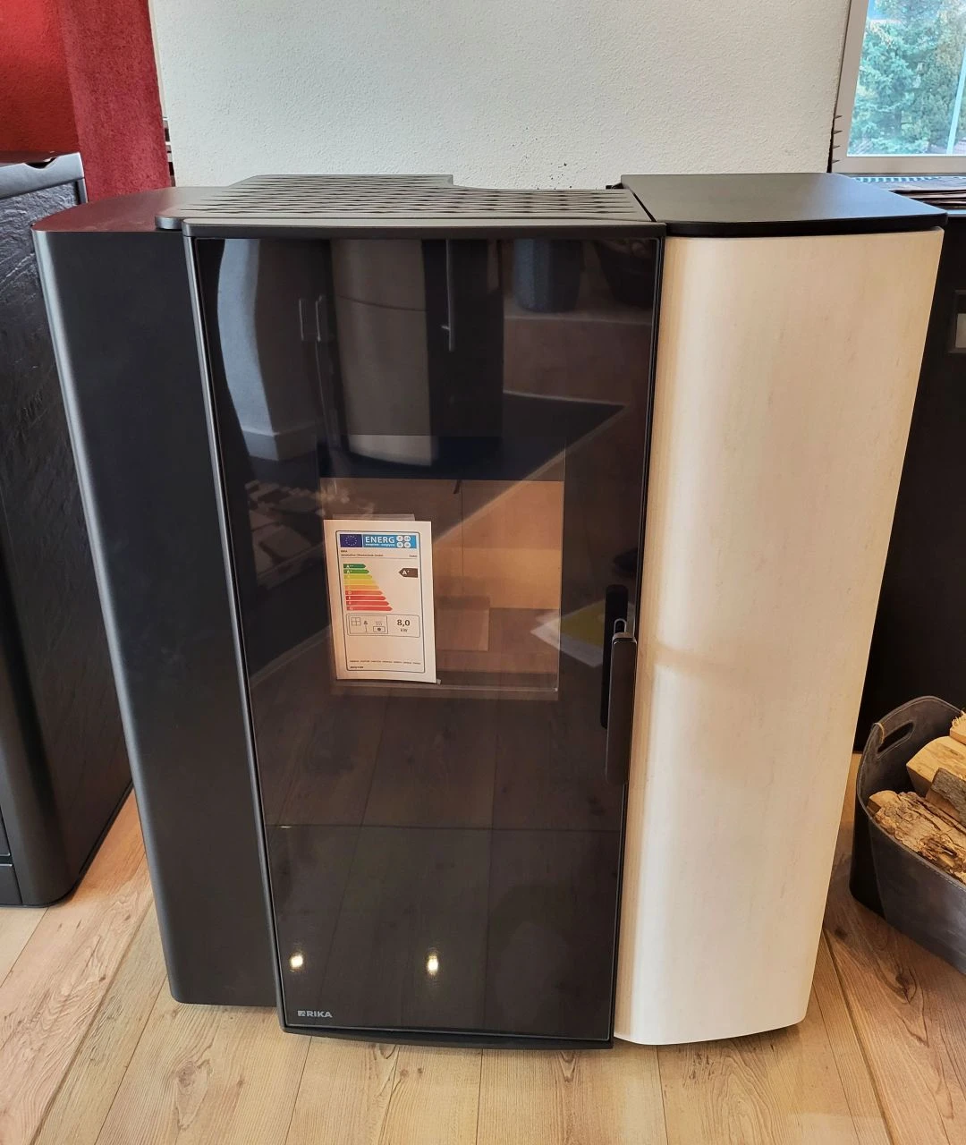 - Rika Paro Ausstellungsstück Kombiofen in Stein weiß und einem schwarz lackiertem Korpus kaufen | ofenersatzteileshop.de